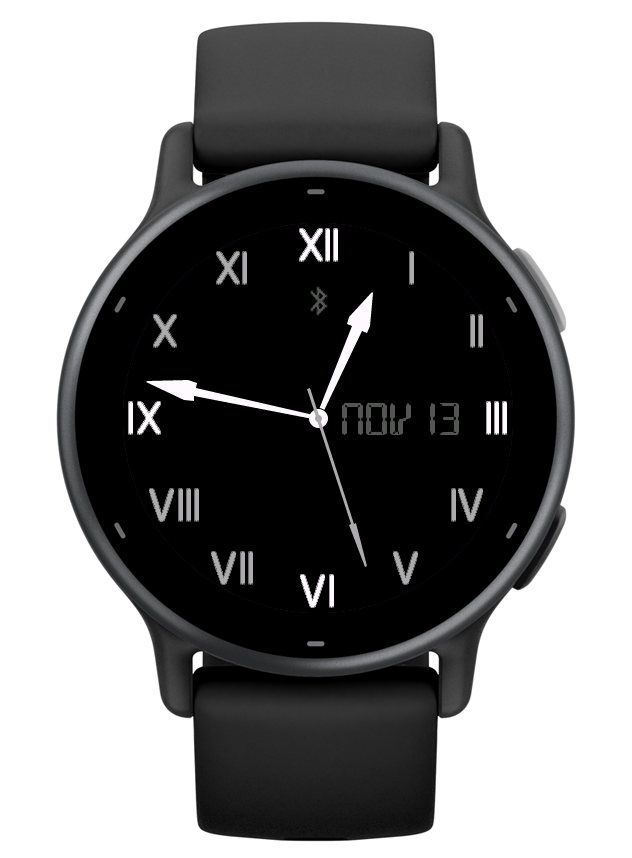 If enabled, this extra hand uses ‘Outline’ style if the main hands are ‘Solid’, or ‘Outline’ with a different color when the main hands are shown as ‘Outline’ too. Operates in 12 or 24 hours mode.