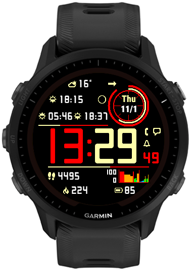 An additional display element, which can be set to ‘Off’ or to the color of your choice. Note that the enhanced visual appeal brought by the texture comes at a cost of increased battery drain and slightly reduced responsiveness. The impact may be more noticeable on devices with less memory such as fenix 6 or Enduro.